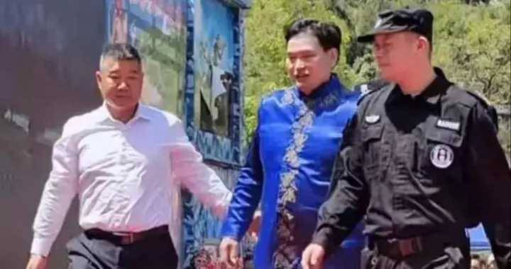 大衣哥在青州商演,天氣晴好,他身著藍色唐裝入場,熱情洋溢,與大家互動親切。